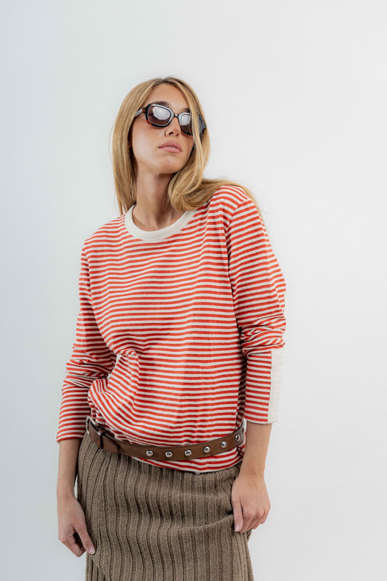 Remeron tejido a rayas de lana/algodon.
